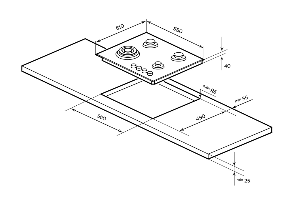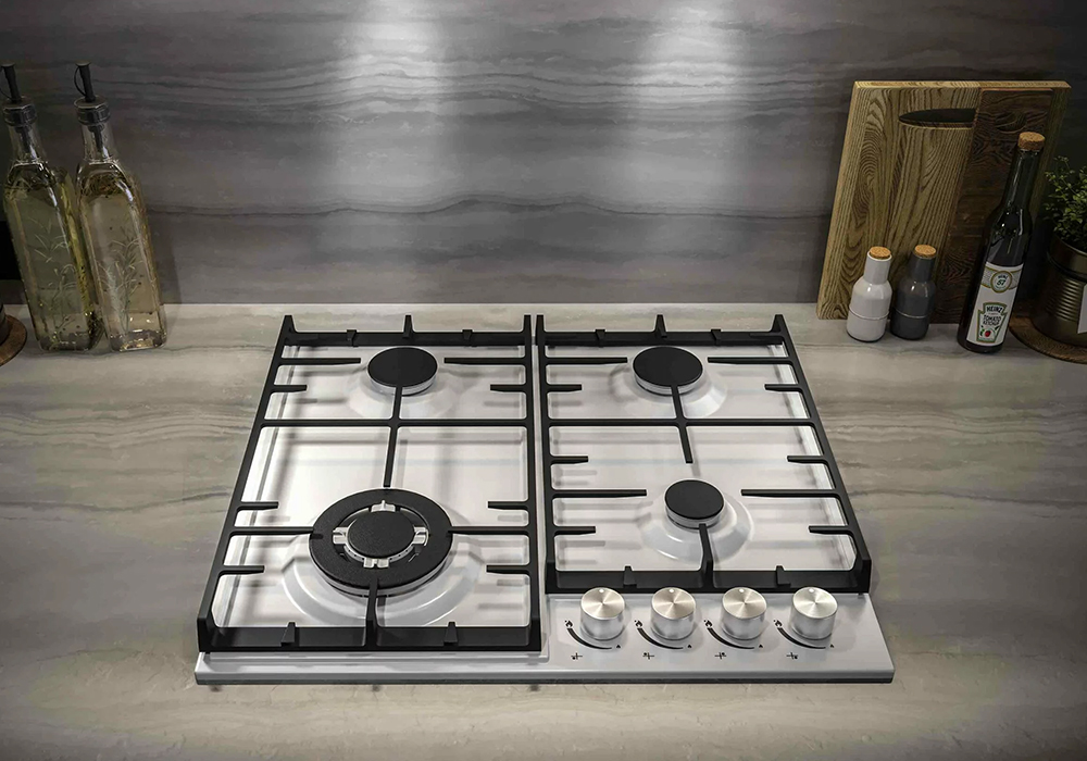 Материал решеток: чугун. Расход газа G20, 20 мбар: 751 л/час. Расход газа G30, 30 мбар: 581.705 гр/ч. Параметры электропитания: 220-240 В переменного тока, 0.6 VA (0,0008 кВт). Электроснабжение: 50 Гц. Конфорка с повышенной мощностью 3300 Вт позволяет готовить блюда азиатской кухни в специализированной посуде или больших кастрюлях. Остальные конфорки работают в стандартном режиме, отличаются диаметром и мощностью. Простое управление с автоматическим розжигом реализовано посредством термоустойчивых ручек, которые удобно располагаются в одном месте.