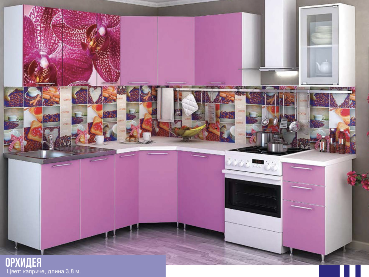 —Кухонный Гарнитур Орхидея Угловая 3800 мм