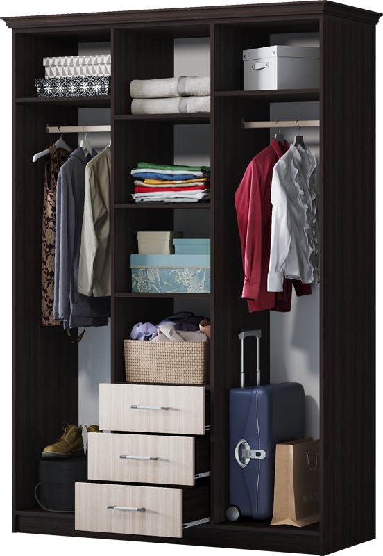Шкаф 3-х Створчатый с 3-мя Ящиками Венге/Ясень Шимо Светлый (Ш-1500 х В-2170 х Г-500 мм)