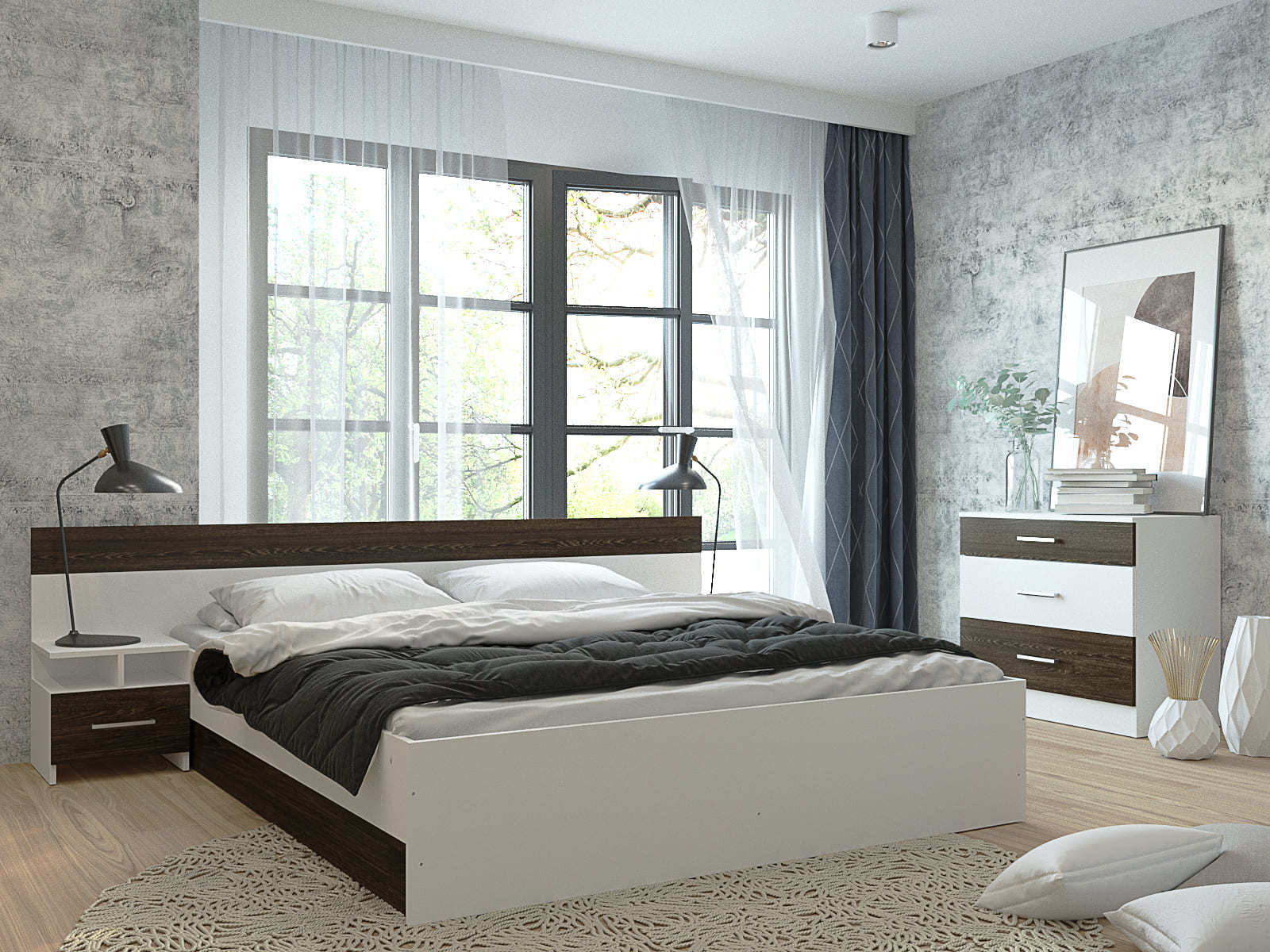 Бюджетная, но выполненная со вкусом спальня будет способствовать здоровому сну и приятному пробуждению.