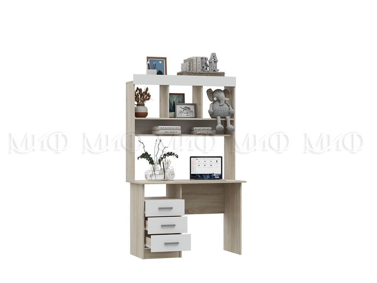 Стол с Надстройкой Марго (Ш-1100 x В-2200 x Г-380 мм) Дуб Сонома/Белый Глянец