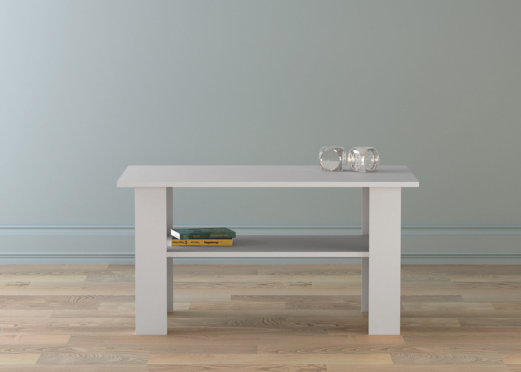 Под основой стола (столешницей) имеется открытое пространство с полкой.